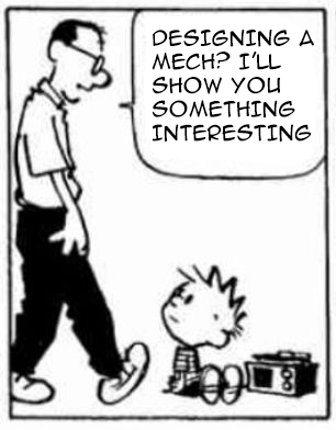 There are three types of mech: Fighter plane, Tank, and Angel. With the exception of the "Calvin's dad" meme, illustrations by Galen Pejeau.